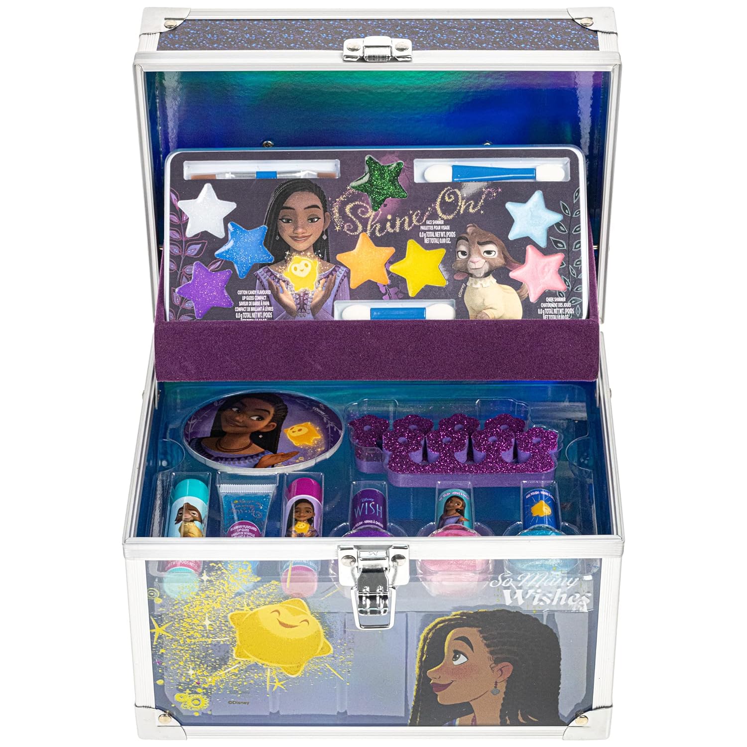 Disney Wish - Townley Girl Train Case Cosmetic Makeup Set Includes Lip Gloss, Eye Shimmer, Brush, Nail Polish, Accessories & more! for Girls, Ages 3+ perfect for Parties, Sleepovers & Makeovers